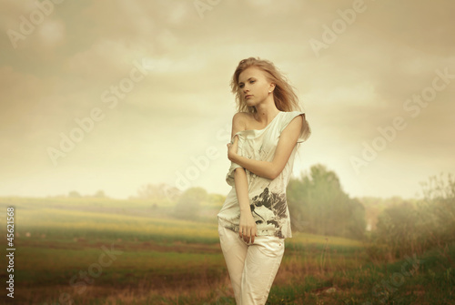 Beautiful girl posing in a field