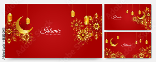 Beautiful golden red Islamic design background