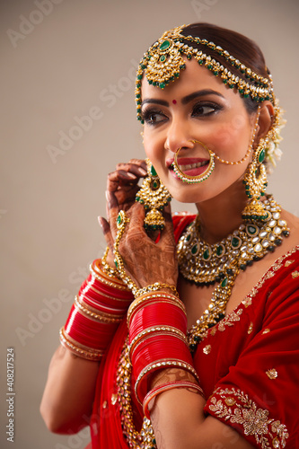 Beautiful Indian Bride, adjusting her earing