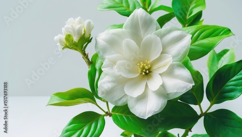 Beautiful Jasminum sambac flower (sampaguita, melati putih) with white background