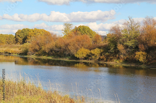 background, tree, water, nature, sun, autumn, forest, lake, yellow, landscape, sky, foliage, orange, green, beautiful, rural, season, river, blue, outdoors, beauty, scene, lush, colourful, high-coloured, travel, hiking, tour tourism, bright, morning, ecology, sunny, duck pond