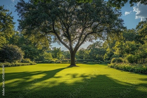 tree, large, lawn, green, nature, garden, background, landscape, scenic, distance, forest, park, beautiful, foliage, environment, summer, garden design, wood, field, natural, flora, leaf, serene, peaceful, sunlight, bright, growth, plant, greenery, scenery, countryside, fresh, rural, tranquil, wide, horizon, fresh air, blue skies, meadow, scenic beauty, lush, vibrant, tree
