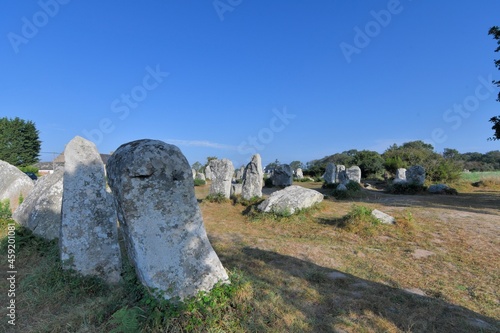 Beautiful menhirs alignment at Erdeven Kerzerho in Brittany Morbihan France