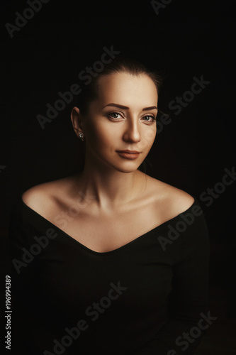 woman, portrait, beauty, young, model, hair, face, black, fashion, glamour, brunette, person, pretty, eye, studio, skin, white, sensuality, looking, people, lip, isolated, lady, 1, dark, key, low, beautiful, female, girl, attractive, sensitive, cute, thoughtful, light, close, shadow, european