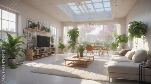 Beautiful modern living room, electric with plant elements