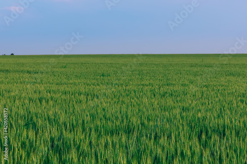 beautiful nature. field of winter wheat. summer evening.