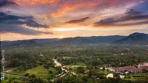 beautiful of sunset at mountain and landscape of Nakhonnayok