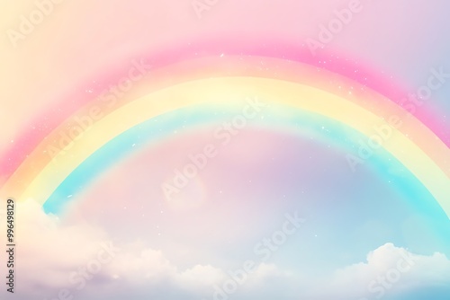 Beautiful pastel-colored rainbow arching over soft, fluffy clouds with a dreamy sky background, symbolizing hope and positivity.