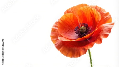 poppy, flower, isolated, white background, red, vibrant, delicate, nature, bloom, botany, flora, garden, ornamental, blossom, closeup, beauty, plant, stem, single, elegant, decorative, colourful, fresh, spring