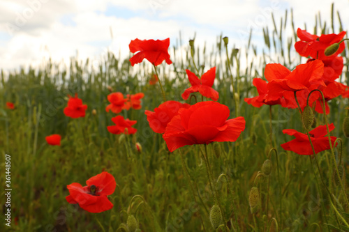 flower, summer, scenic, scenery, scene, seasonal, season, plant, papaver, growing, grass, fresh, countryside, environment, day, bud, life, landscape, spring, green, closeup, blossoming, blossom, blooming, bloom, flower petals, aromatic, aroma, nobody, object, meadow, field, growth, red, poppy, outdoors, beauty, nature, background, beautiful, flower