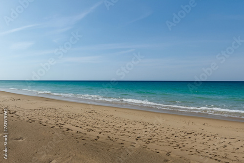 Beautiful sandy beach and turquoise sea under the blue sky