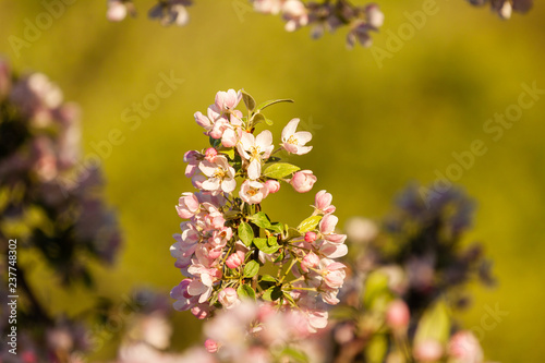 Beautiful spring blossom of apple cherry tree with pink flowers.