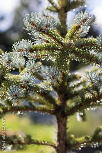 plant, background, blue, leaf, evergreen, tree, nature, natural, green, spruce, dew, summer, fir, tree branch, pine, forest, needle, raindrop, macro, decoration, season, beauty, dripped, light, closeup, outdoors, environment, water, abstract, wet