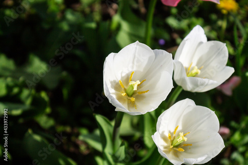 Beautiful tulps in the spring in the garden close-up.
