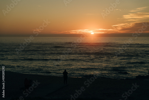 Beautiful view of ocean beach, Lisbon Portugal.