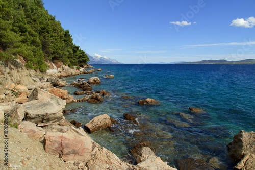 Beautiful view of the Adriatic Sea in Croatia in southern Dalmatia with Biokovo mountains