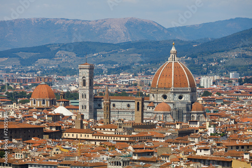 Beautiful view of the picturesque city of Florence and the Basilica di Santa Maria del Fiore (Basilica of Saint Mary of the Flower). Florence, Central Italy, Tuscany region