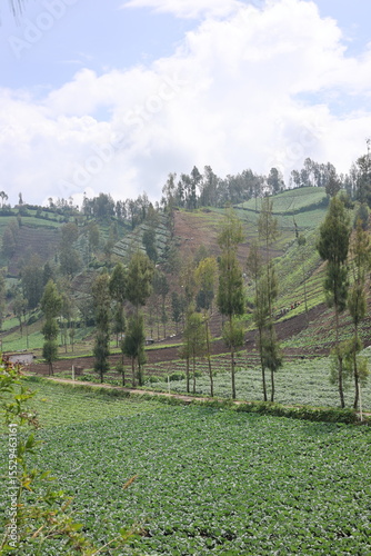 Beautiful view of vegetable plantations on the hillside.
