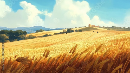 field, landscape, nature, summer, plant, wheat, farm, agriculture, rural, growth, crop, background, countryside, cereal, season, natural, harvest, country, land, gold, beautiful, yellow, farmland, grain, seed, food, sunlight, sun, sky, farming, ripe, bread, bright, agricultural, cloud, blue, environment, meadow, corn, grow, sunset, autumn, grass, closeup, outside, scene