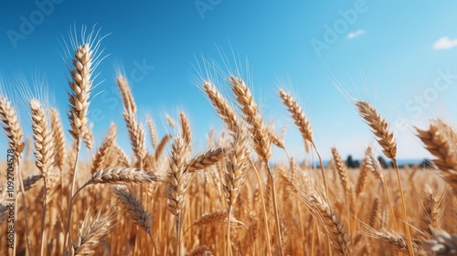 Beautiful wheat field on a clear, sunny blue summer day - high resolution landscape image for sale