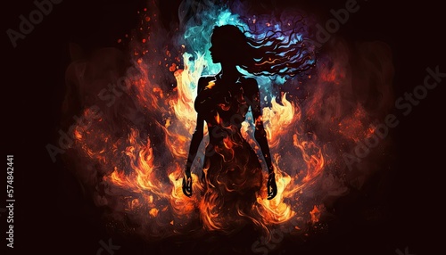 Beautiful woman flame silhouette, elegant and powerful, illustration, background, artistic - generative AI
