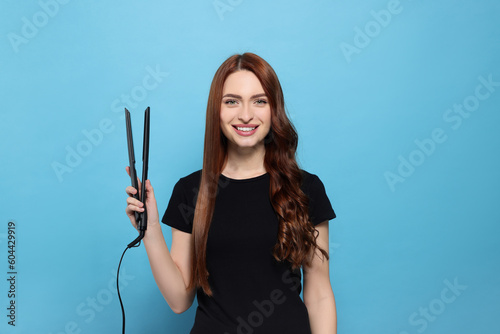 accessory, adult, appliance, background, beautiful, beauty, black, blue, care, caucasian, curl, curly, device, electric, equipment, fashion, female, girl, hair, hair care, coiffure, happy, healthy, heat, hot, iron, lifestyle, light, long, model, modern, natural, honed, person, portrait, professional, smiling, strait, studio, style, stylish, hairdresser, technology, tongs, tool, trend, use, woman