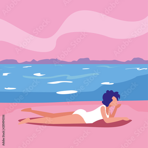 beautiful, woman, swimwear, summer, time, sky, cloud, vector, illustration, girl, vacation, female, bikini, travel, beauty, young, lifestyle, water, tropical, sexy, fashion, model, slim, body, person, people, happy, nature, relax, resort, summer, background, design, swimwear, adult, relaxation