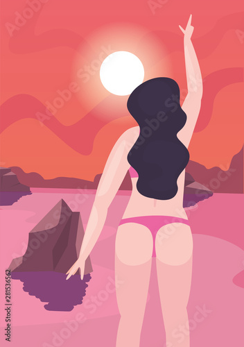 beautiful, woman, swimwear, summer, time, vector, illustration, girl, vacation, female, bikini, travel, beauty, young, lifestyle, water, tropical, sexy, fashion, model, slim, body, person, people, happy, nature, relax, resort, summer, background, design, swimwear, adult, relaxation