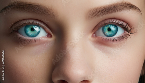 Beautiful women staring with cute green eyes, watching nature beauty generated by AI