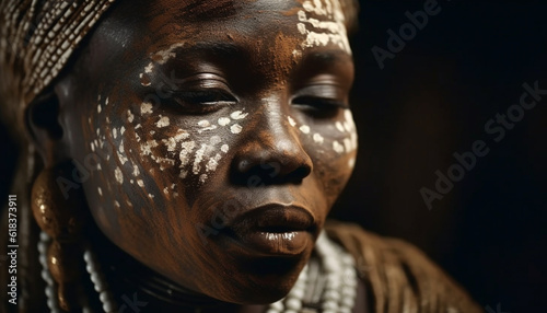 Beautiful young African woman with serene confidence generated by AI