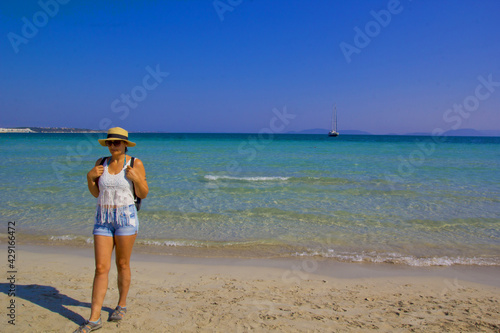beach, bikini, woman, summer, sea, hat, beauty, beautiful, vacation, young, water, ocean, swimwear, happy, sun, travel, sand, holiday, people, model, body, tropical, lifestyle, blue, leisure, concept, female, white, white hat, turkey, izmir, wave, landscape