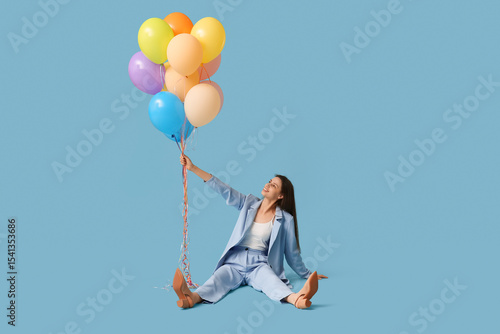 air, balloon, beautiful, blue, colourful, sitting, woman, young, adorable, adult, attractive, background, balloon, birthday, bunch, bundle, caucasian, celebrate, celebration, colours, congratulation, enjoy, event, fashion, female, festive, fun, gift, girl, greeting, happy, helium, holding, holiday, inflatable, joy, lady, lifestyle, many, party, people, person, portrait, present, pretty, smiling, style, surprise, trend
