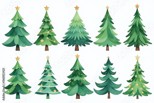 attractively, designed, watercolor, christmas, tree, various