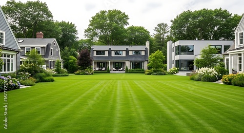 lawn, grass, manicured, green, modern, home, architecture, suburban, landscaping, outdoors, property, estate, residential, neat, tidy, summer, day, sunny, tree, nature, exterior, house, design, beautiful, yard, garden, suburbia, neighbourhood, countryside, rural, village, town, city, community, dwelling, residence, building, structure, construction, real estate, homeownership, living, lifestyle, comfort, peaceful, serene, tranquil