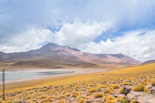 Beauty lake and volcanoes on Altiplano, Bolivia