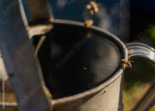 bee drinking from a can outdoor