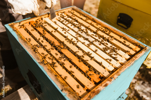 Beekeeper working collect honey. Beekeeping concept.