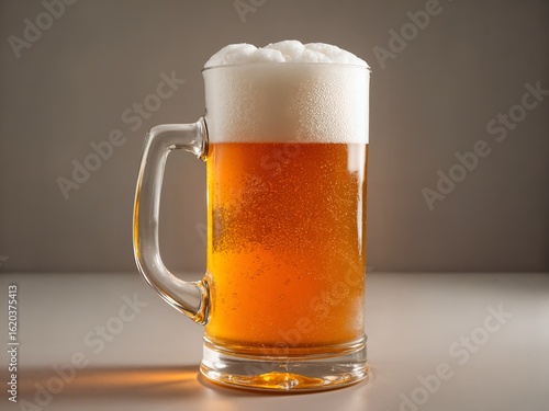 beer mug, draft beer, amber, frothy, detailed, photorealistic, closeup, inviting, still life, refreshing, studio shot, glassware