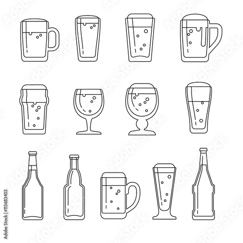 beer, drink, vector, alcohol, beverage, illustration, cup, glasses, bottle, bar, mug, pub, brewery, foam, collection, flat, lager, full, brewing, silhouette, bowl, foamy, signs, badge, label, logotype, logotype, emblem, design, graphic, shape, isolated, white, outline, element, simple, menu, icon, set, art, background, contour, group, cap, type, crockery, line, linear, symbol, form