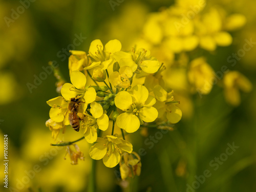 Bees are collecting honey on mustard seeds.Selective focus