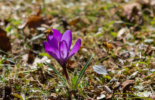 Bees around crocus