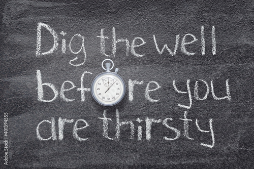 dig, well, before, thirsty, planning, prepare, future, problem, solution, forecast, chinese, culture, saying, symbol, vintage, precise, stopwatch, second, clock, clock dial, blackboard, motto, time, moment