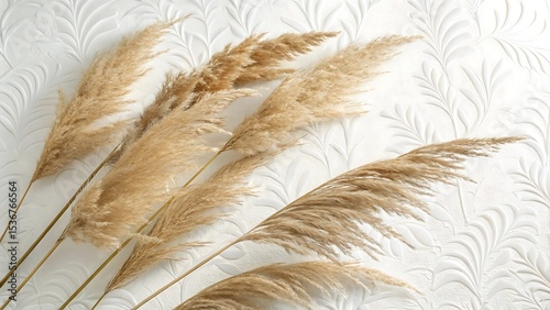 Beige Pampas Grass on a White Textured Background, ideal for wall art, botanical prints, home decor, or social media templates.