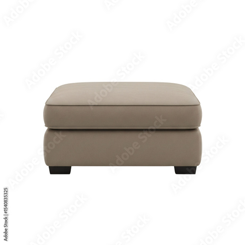 Beige upholstered ottoman stool, isolated on transparent background