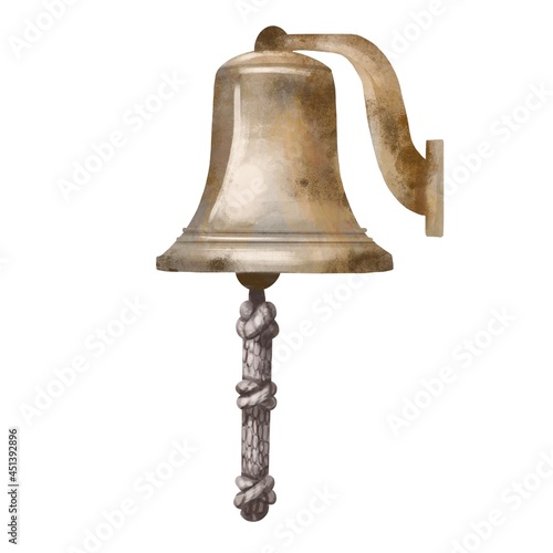 christmas, church, class, jingle, iron, rust, pirate, navigation, aquarelle, adventure, yacht, maritime, watercolor, sailing, vessel, traditional, hang, rope, 1, naval, object, vintage, bronze, bell, metal, old, antique, copper, isolated, retro, background, white, ring, call, brass, signal, alarm, alert, marin, hand-drawn, illustration, nautical, boat, element, sea, ship, history, decoration, sound