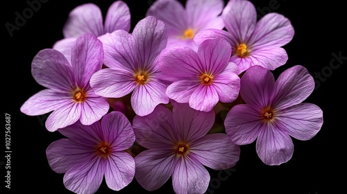 product, photo, high, contrast, high-coloured, colours, random, symmetric, star-shaped, purple, flower, black, background, botanical, blossom, bloom, vibrant, floral, macro, detail, foliage, leaf, horticulture, ornamental, decorative, unique