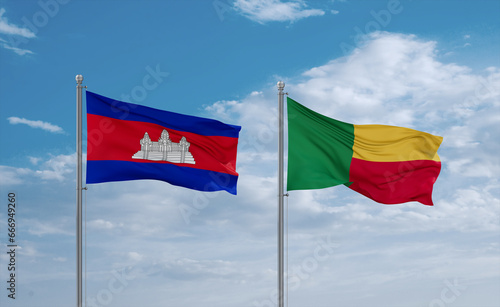 Benin and Cambodia flags, country relationship concept
