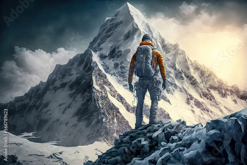 Bergsteiger in den Bergen Alpen Mountain Digital Art Abstrakte Illustration Generative Ai Hintergrund Background Cover Magazin