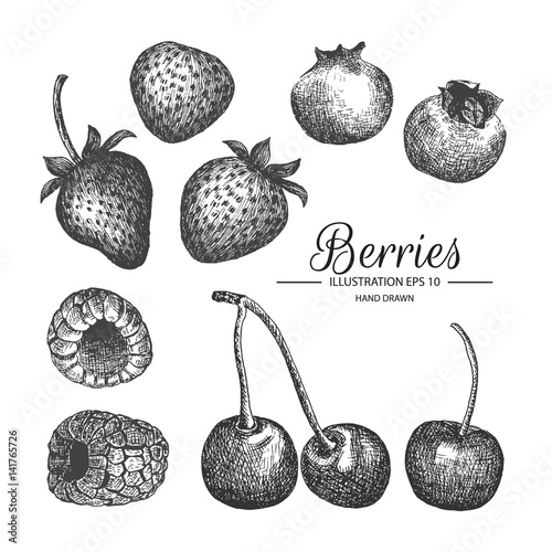 Berries hand drawn collection by ink and pen sketch.