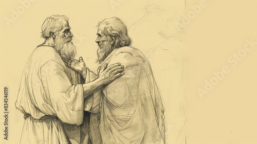 Biblical Illustration of Job 16: Job's reply, lamenting friends' lack of comfort, describing intense suffering, appealing to God as witness and advocate, Beige Background, copyspace